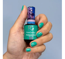 Pink Gellac 271 Palmbeach Green. Verde, alegre, vigoroso, atrevido. Cuando piensas en Miami, probablemente pienses en palmeras. Deja que tus uñas brillen con nuestro color esmalte de uñas de gel verde y acabado cremoso.